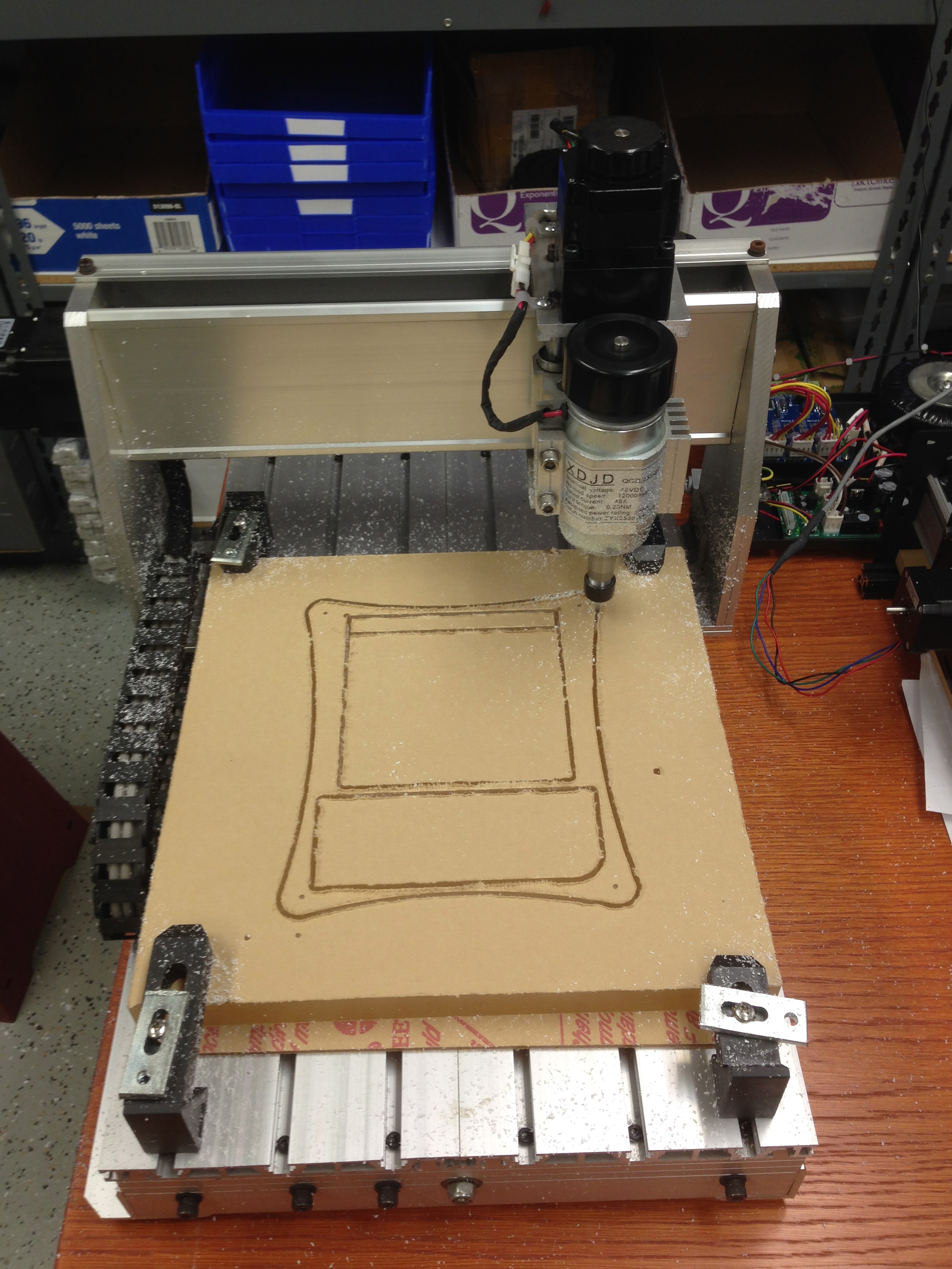 The timing coincided quite nicely with a new arrival to the basement—a “new” Chinese 3020 CNC router. The project started with the assembly of the machine, a pretty smooth and largely painless process. A benefit of the machine’s ubiquity is that the design is well tested and proven. After an electronics hack on the default controller consisting of a full-on gutting of the stock stepper controller circuitboard and replacement with a TinyG v8, and we were up and running.