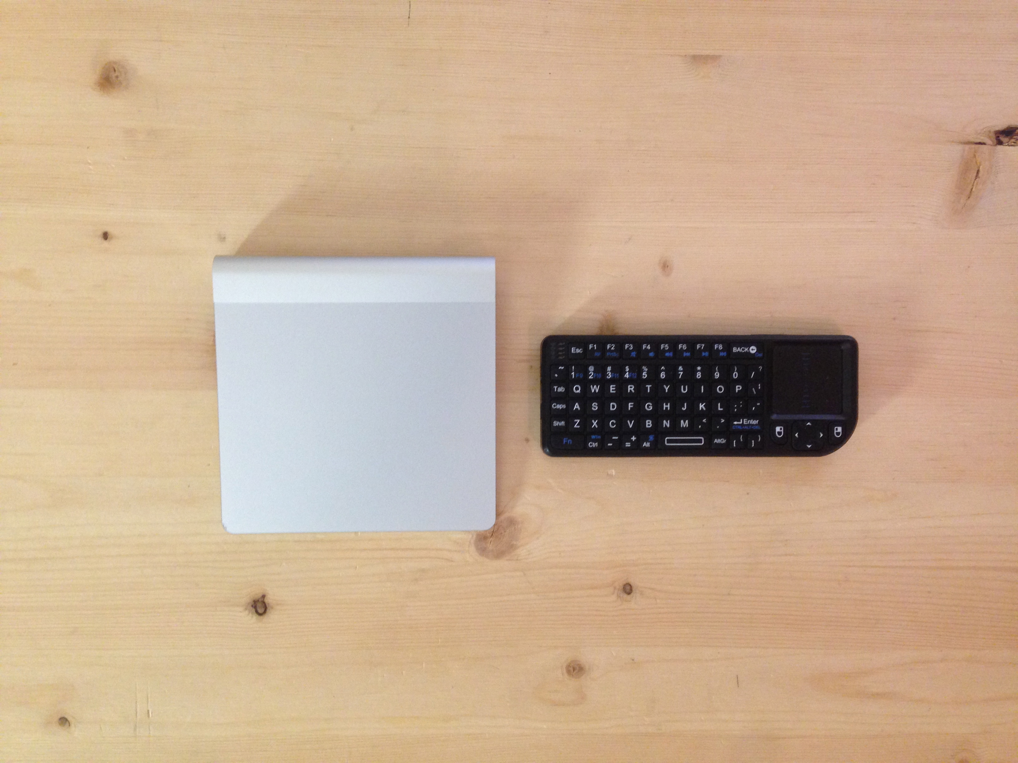 I’ve been using an Apple Magic Trackpad for the past few months in tandem with a FAVI mini wireless keyboard to satisfy my remote controlling needs. But why carry two things when you can carry one thing? I’ve been sitting on the idea for an integrated housing for quite some time, and now it was time to act. An hour with the controllers, calipers, a notebook, and SolidWorks, and the piece was ready to be cut.